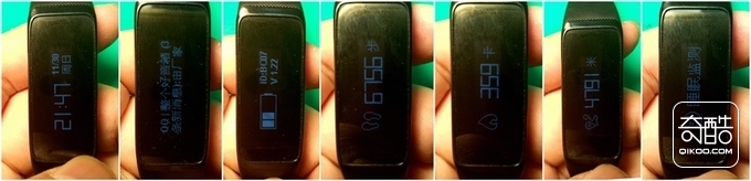 ↑常见信息显示效果。在手环上通过左右滑动和点击能看到各项信息。
