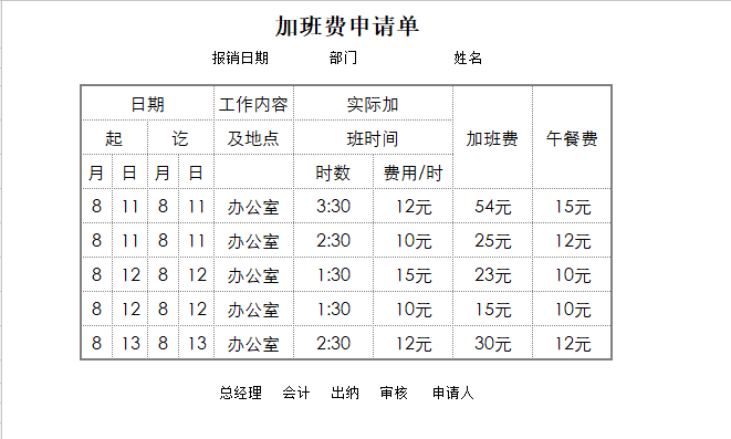 加班费申请单模板