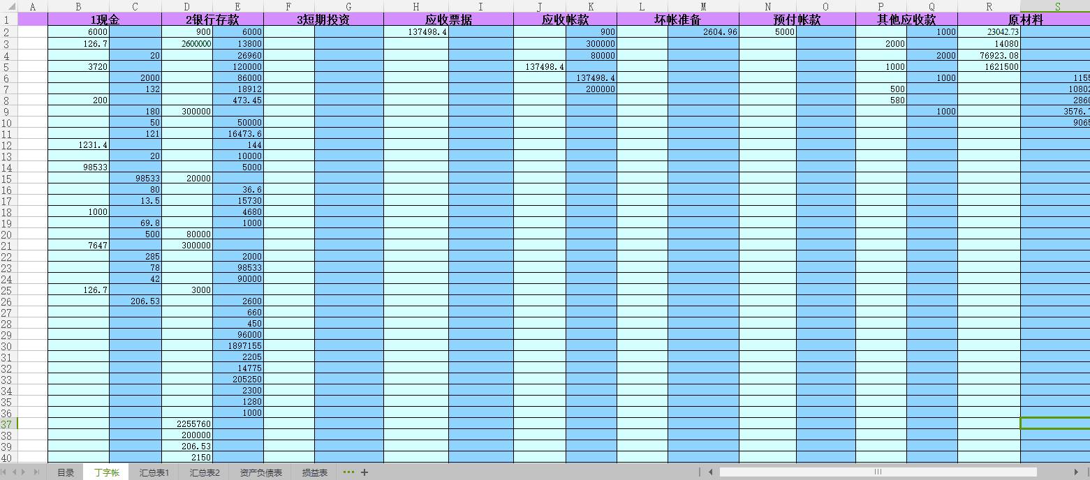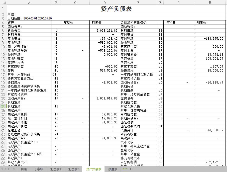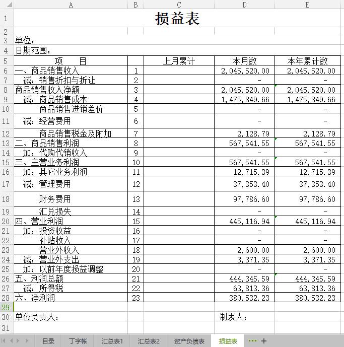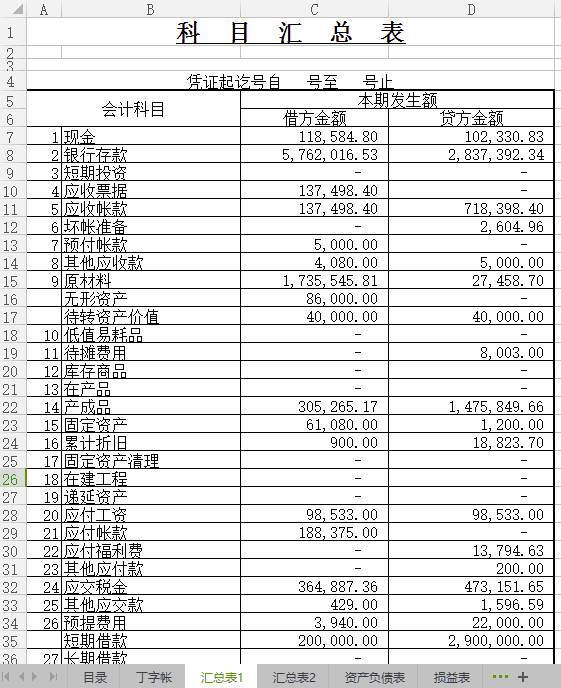 丁字帐、科目汇总表、资产负债表、损益表