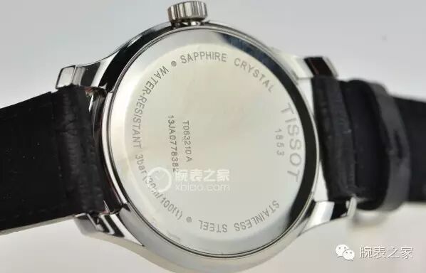 腕表表底为精钢材质的密闭表底,表底上镌刻有表款的一些相关信息。表底进过抛光打磨,触感光滑,与腕部接触很舒适。内部搭载型号为F05.111的石英机芯,而一般石英腕表的电池可使用2-3年,经久耐用且走时准确。