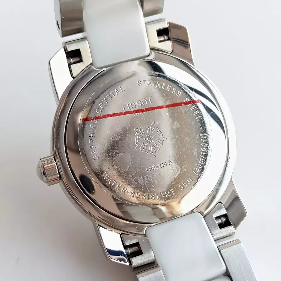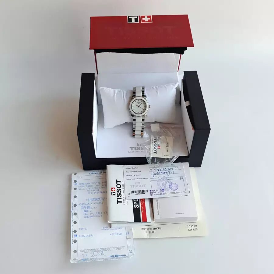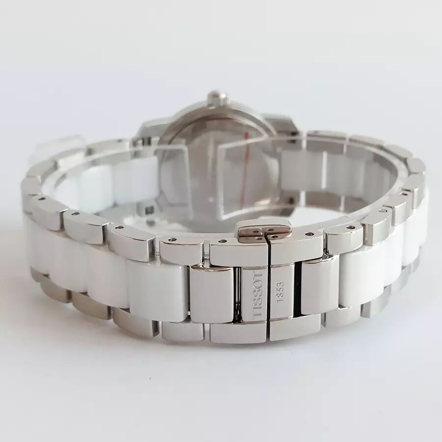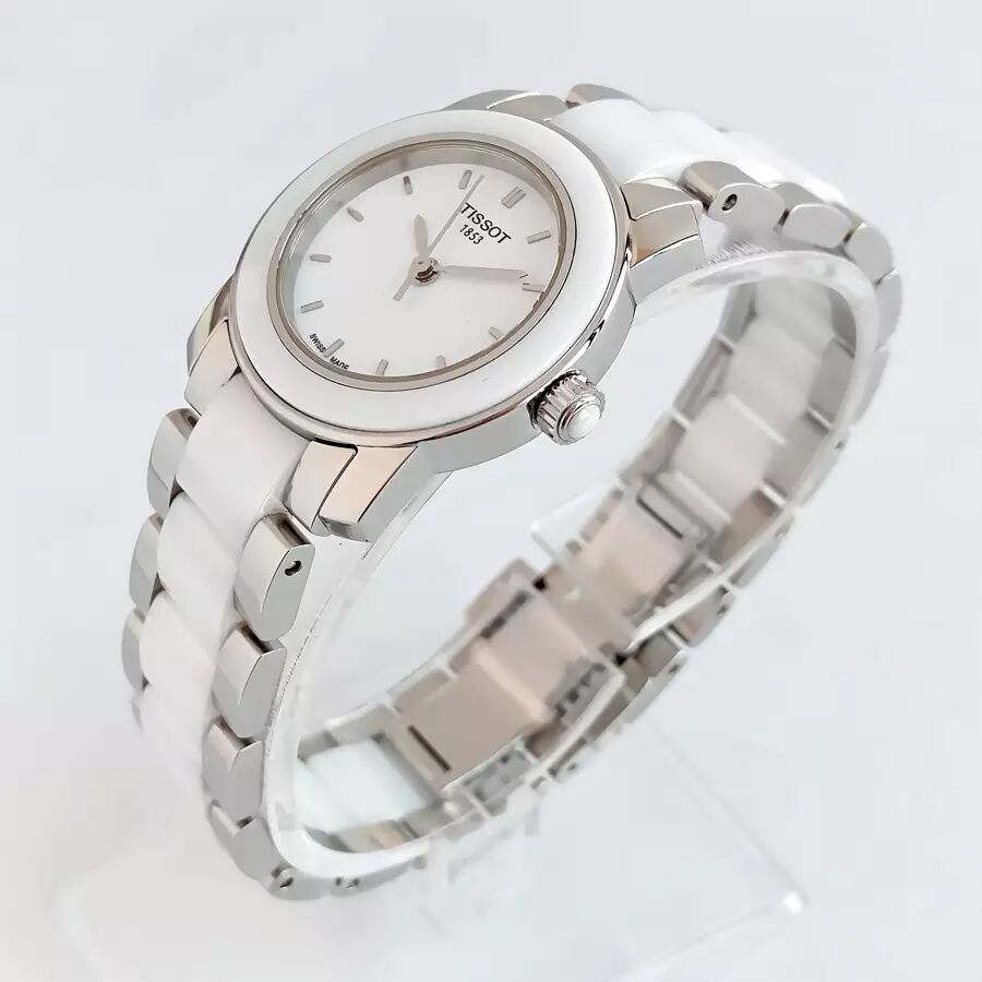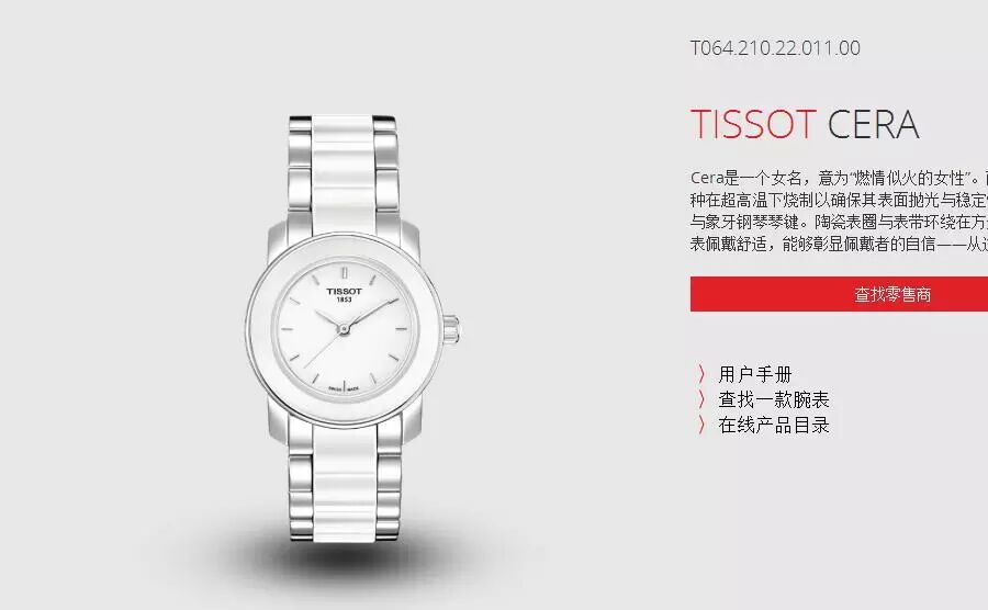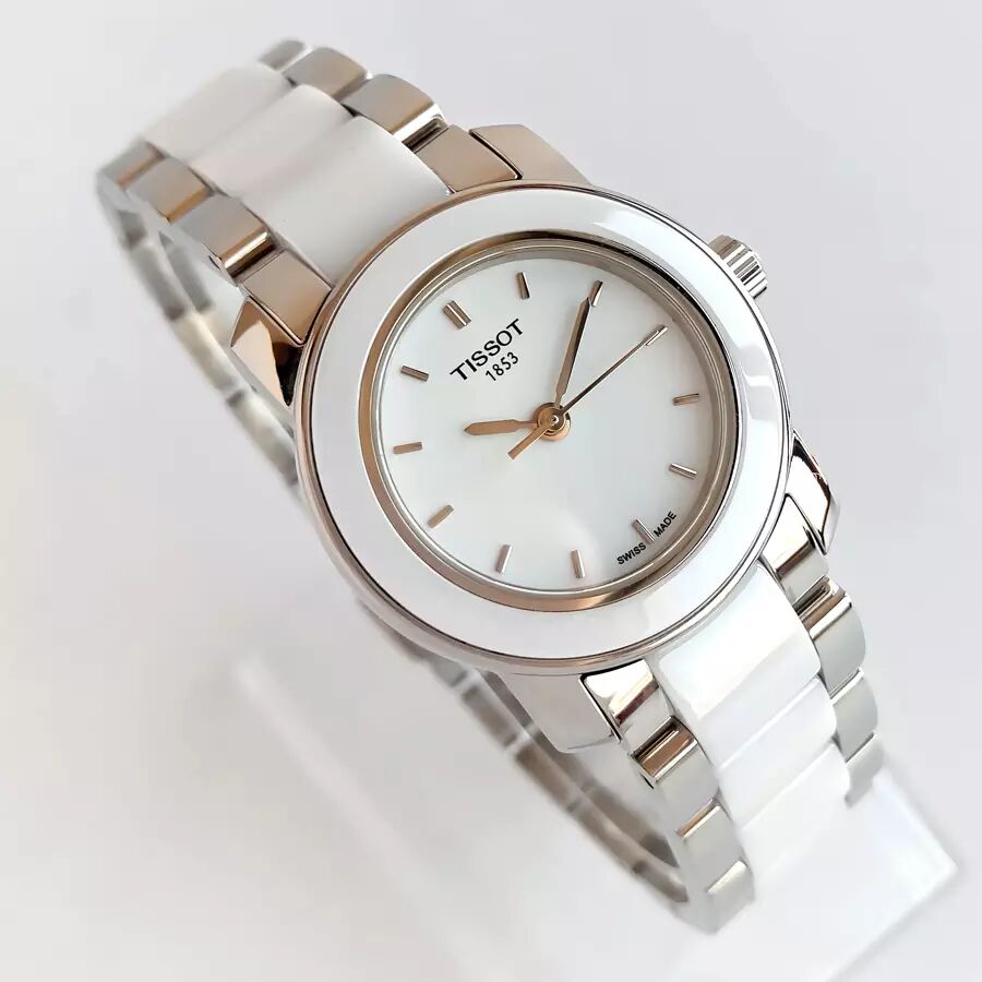 天梭瓷艺系列白陶瓷精钢款三针石英女士腕表。型号:T064.210.22.011.00,Cera是一个女名,意为“燃情似火的女性”。而这也完美体现了该款手表的材料——陶瓷,一种在超高温下烧制以确保其表面抛光与稳定性。28MM表径,白色表盘,立体钉条刻度,剑形指针,蓝宝石水晶镜面,搭载精准省事的石英机芯,女士佩戴极佳。陶瓷表链,折叠扣。
