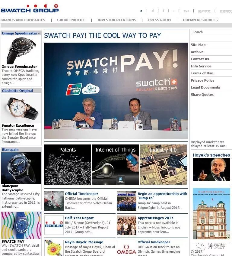 斯沃琪集团对中国市场非常重视。好几个重要品牌的最大市场就在中国。斯沃琪集团全球官网的最新页面上,首页大图就是斯沃琪腕表和中国银联及众多中国知名银行合作发行的SwatchPay腕表,而且就在中国首发。正如斯沃琪集团全球总裁海耶克先生所说:只有中国市场才具备广泛发行此款闪付腕表的最佳条件