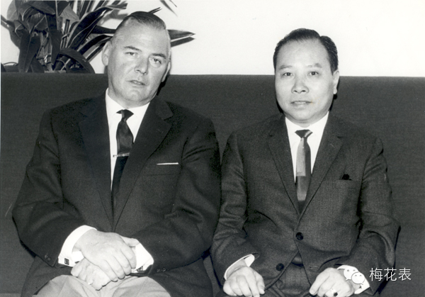上图为:梅花表创始人Schluep(左)与辜美佑先生(右)的合影