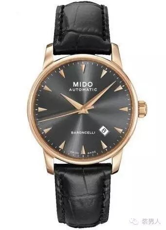 美度贝伦赛丽系列腕表承袭了雷恩歌剧院圆形的建筑特征,将其微妙的曲线和轮廓融入腕表设计,极致简约的造型回归腕表设计根本,最纯粹地表达时间,重现新古典主义朴素庄重外形。此款表壳采用了真空离子电镀技术,使普通的精钢彰显了更高的层次;配以阿拉伯数字刻度,简单而经典;搭载ETA 2824-2机芯,走时精准;内敛的灰黑色表盘与玫瑰金一张一弛,适合35-50岁之间男士佩戴。参考价格:4750元