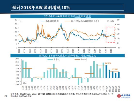 中信证券和招商证券相对保守,预计明年A股整体盈利增速在10%-12%左右,呈现温和增长态势。国泰君安认为,2018年全部A股净利润同比增速有望达到16.4%,业绩波动呈现W型向上。