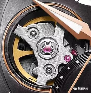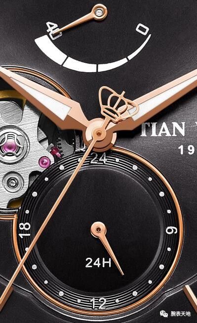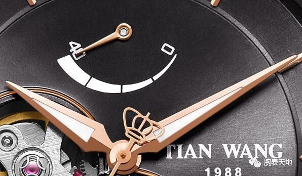 动力储存显示通常设在表盘下侧,但天王却不落俗套地将它挪到了上侧的12时位置。如果我们仔细观察,会发现左右两边各有一个阿拉伯数字,即40和0。