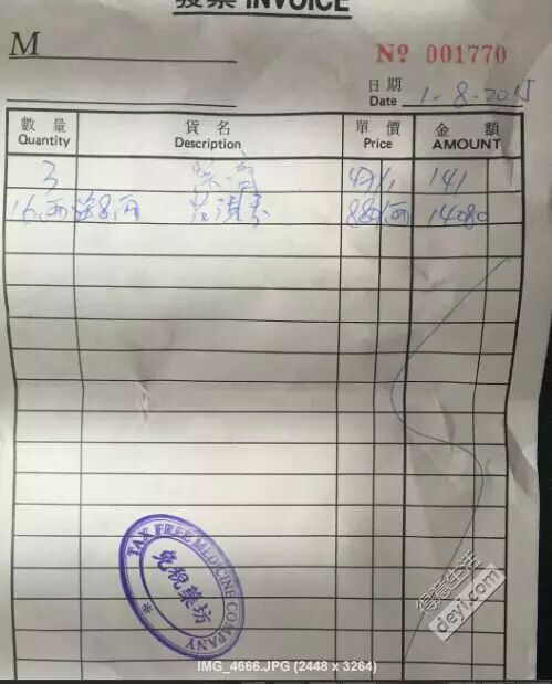 下午4点,又回到药店,见到了经理,这经理态度极其不好,他拿出一张昨天我爸签好的纸出来,指着我们说:“你们还来干什么?这是你们签的字,你们自己看自己看。”我接过那张纸条,才看清楚这样两行字,大致意思是此事就此了结,以后不许报警,不许告消费者协会。下面还有我爸的签名和电话号码。经理还不停地拿着这张纸指着我妈大声说话。我妈当时就血压上来了,脸色发白,呼吸有些困难,立刻吃了救心丸,到这时候他们又答应用买下的方式,买回两包,称了一下398克价值3500元港币,但是他只给了3200元,并把我爸手上的单据修改了。还要求把昨天没有签字的POS单签上名字,就这样我们擎着泪花离开了。