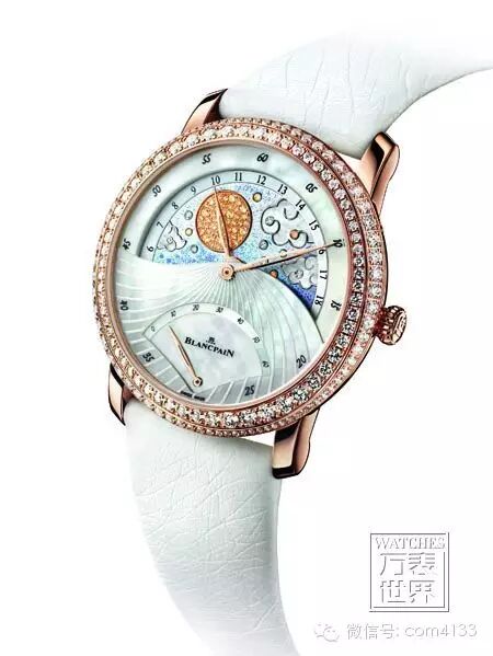 ,宝珀全新女装系列日夜显示腕表搭载卓越非凡的独有机芯及双逆跳指示功能,表盘采用了精细做工及大量技术创新,四层表盘完全采用珍珠贝母材质,分为三个区域,每层的不同高度营造出强烈的景深效果。而逐渐提升的层高,则要求在珍珠贝母表盘上的每一步工艺皆要细致谨慎,因为这种嵌于德国银上的材质,每一层都会比之前一层更薄,因此也更为脆弱易碎。