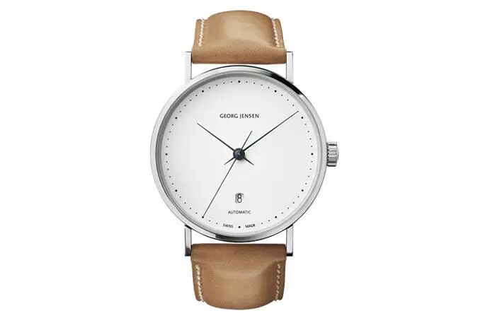 著名的丹麦珠宝品牌 Georg Jensen 同样设计和生产精致的手表。Georg Jensen 的手表大多采用高档瑞士自动机芯。最大的特点是外表朴实无华,与其他品牌不同的是, Georg Jensen喜欢用一个圆盘而不是小方框来表示日期。
