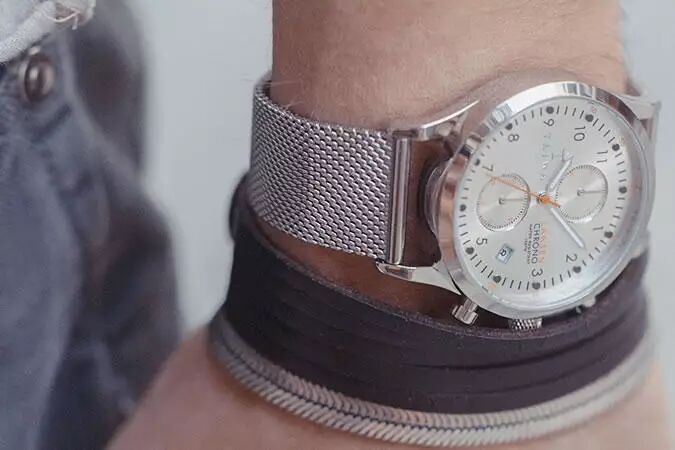 这个风格的手表非常适合搭配高领毛衣,粗框眼镜和休闲西装。
