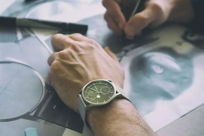 斯卡恩的名字来自丹麦最北端的小镇,它延伸到北面海洋,在一个狭长的半岛顶端。该品牌擅长于操控金属和皮革,认为界面简洁,磨砂金属质感是最美的。曾经在钟表展上展出多款钛金属表盘,网状金属表带的手表,并且引领着这一趋势。