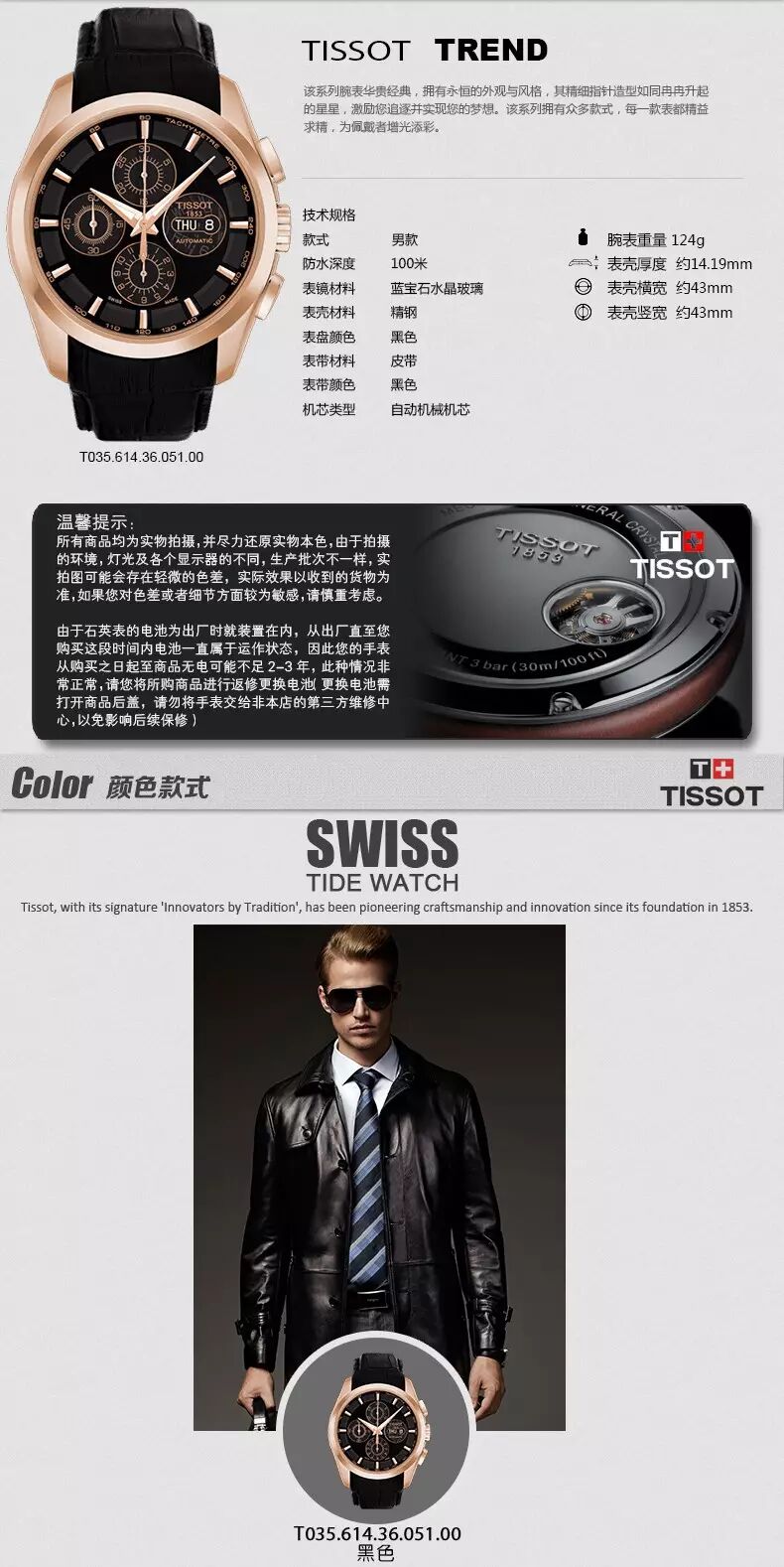 天梭库图系列男表T035.614.36.051.00零售价格:12550元