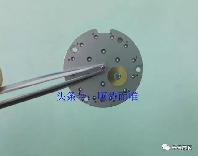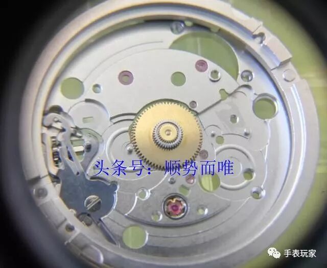 这就是拿下表盘后的实拍图,这就看到变化了吧,这个传动轮的位置随意变化,决定小秒针的位置