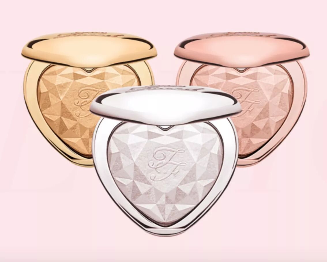Too Faced出的这款高光一共有三个颜色可选:Ray of Light、You Light Up My Life、Blinded by the Light。说人话就是玫瑰金色,金色以及白金色。