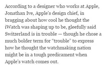 Apple Watch的问世让更多人知道了智能手表。但当苹果设计高级副总裁Jonathan Ive在采访中直接说出:“瑞士手表业有麻烦了” 后,传统表业与智能表业“被迫”站在了对立面。