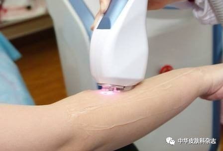 适用于IPL的血管性病变包括毛细血管扩张、面颈部毛囊红斑黑变病、鲜红斑痣等浅表性血管病变。面颈部毛囊红斑黑变病多可获得短期淡化,但是数月以后容易出现皮损复发,需告知患者此为临时改善措施。IPL对鲜红斑痣等血管疾病效果有限,往往以淡化为主,不同部位效果有差异,以颈部效果最佳,可能会获得明显改善[11]。草莓状血管瘤往往高出皮肤,强脉冲光能量相对容易达到血管瘤内浅层血管,治疗可以减少血管,减轻皮肤增厚变红的倾向,使血管瘤发展缓慢甚至短期好转[12]。由于IPL能量不容易穿透到深层,能量主要蓄积在表皮,容易造成不良反应如色素改变等,肤色深的患者风险较大。