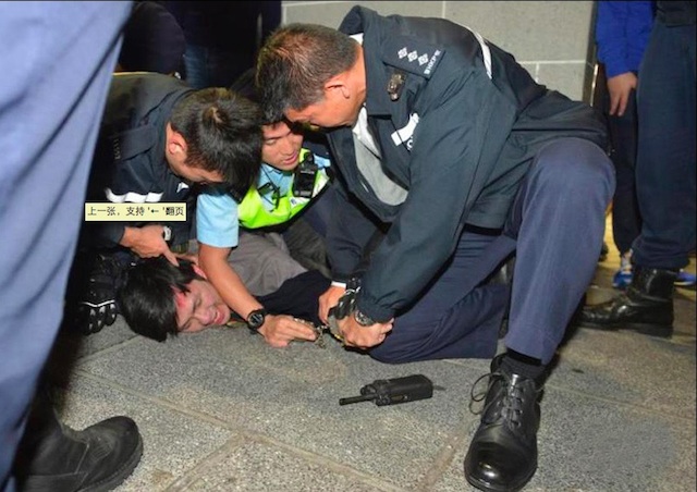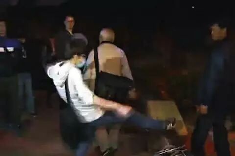 ▲一名老人被示威者推倒