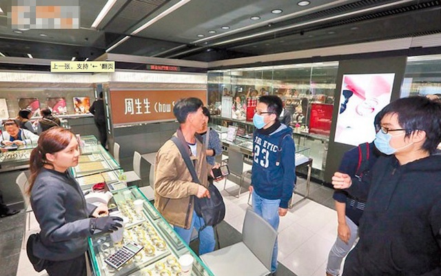 ▲示威者冲进一家金店,指责在场游客