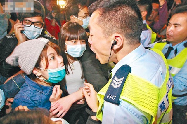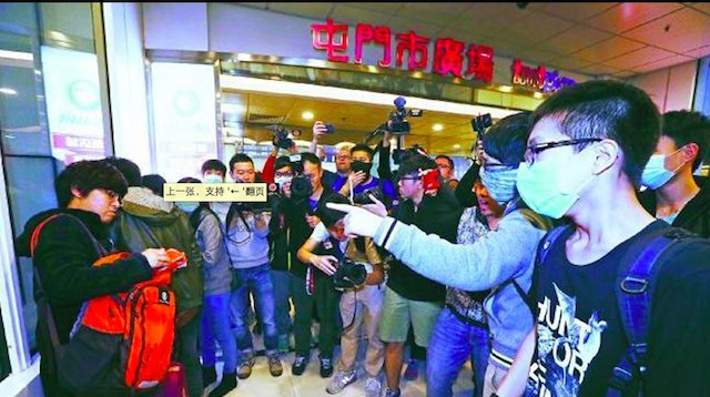 ▲示威者围堵、漫骂内地游客