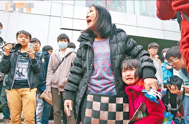 ▲一对母女被包围,孩子被吓哭