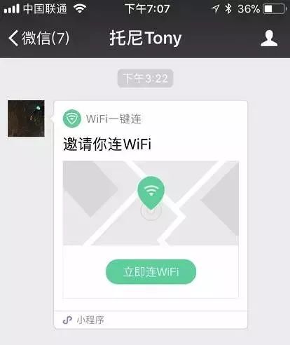 还可以将通过“WiFi 一键连”连接过的 WiFi ,直接发微信给好友,好友可以直接点击连接WiFi。