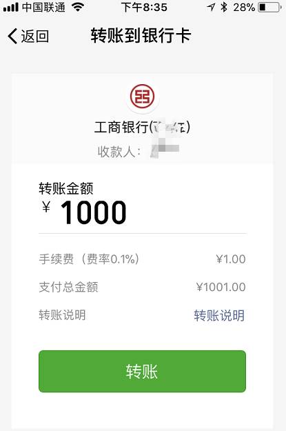 当然了,这和【钱包】-【零钱】-【提现】一样,要收 0.1% 的手续费。