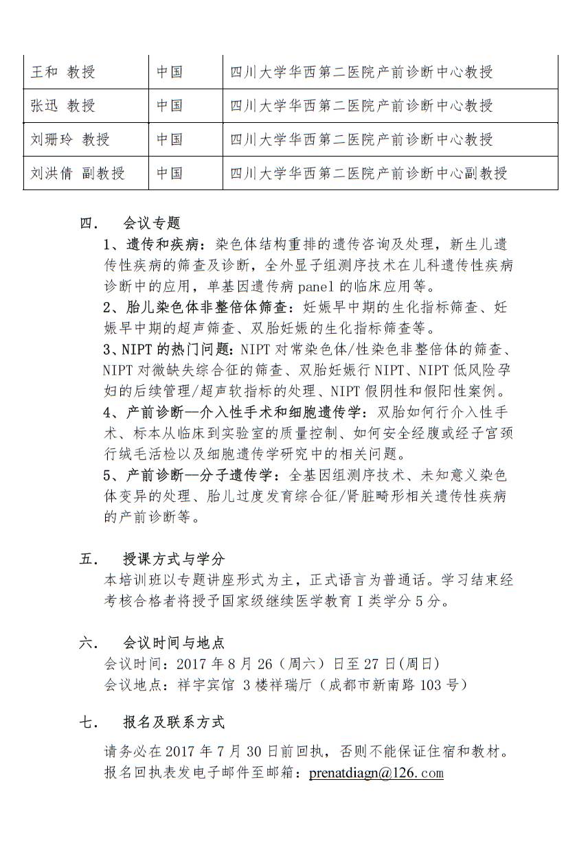 本次会议以血清学筛查为专题的会前培训班无须缴纳会务费,名额有限,请务必在2017年7月30日前回执。