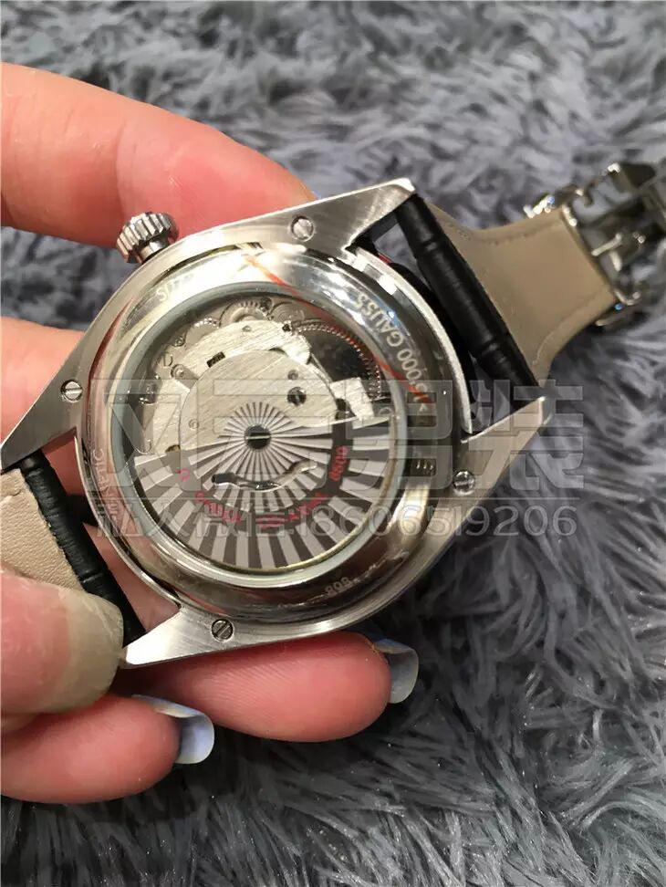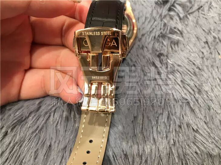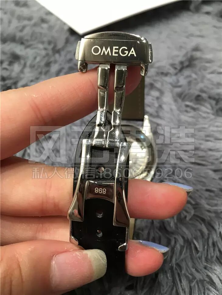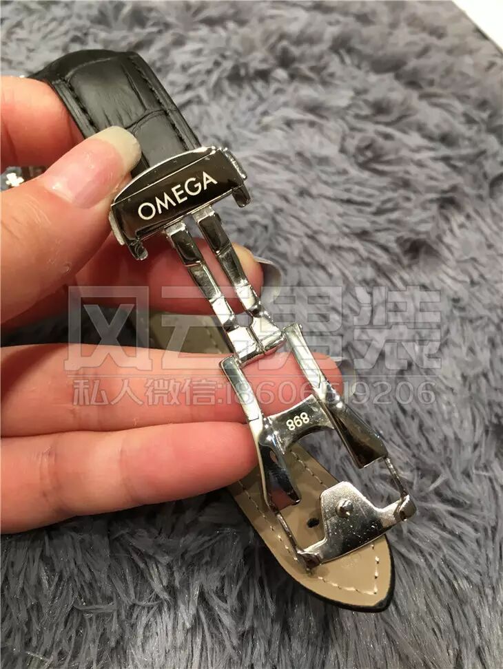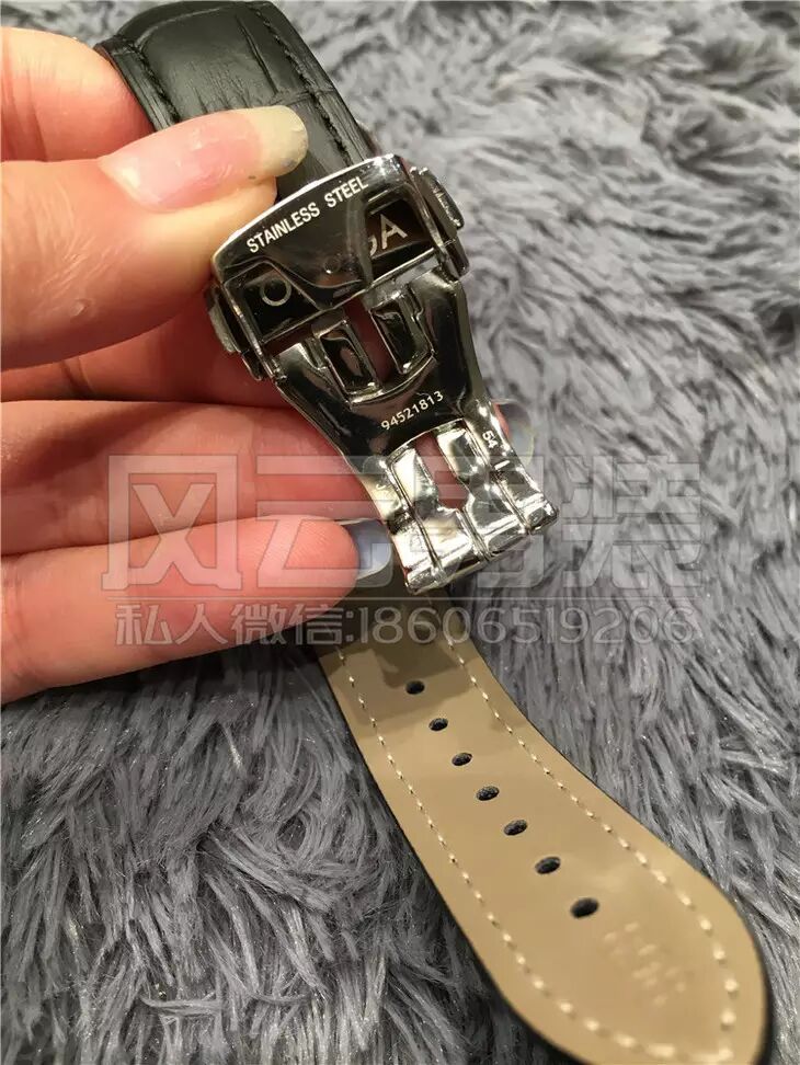 所谓美女配英雄嘛,机壳是最好的316德国顶级钛钢铸造而成,表面采用的是真金炉内电镀工艺,钢面的亮度是普通的好几倍,真的会闪到眼镜!!表带肯定不能差,用的是意大利小牛皮压制鳄鱼纹,欧米茄的原装表扣!!!