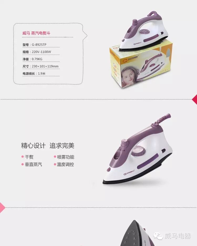 威马经典款蒸汽电熨斗G-892STP 紫色