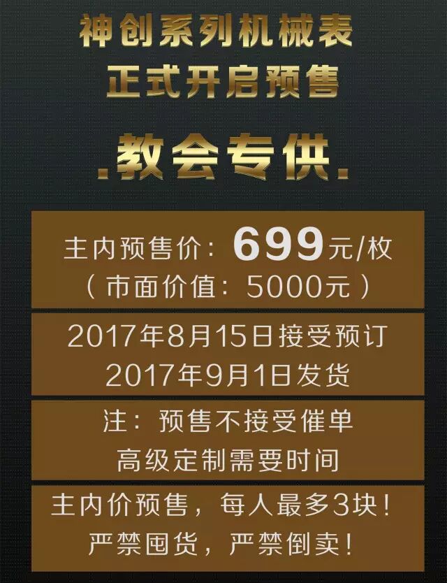 弟兄姊妹平安,因着主,感谢主,我们又迎来了全新一次“基督定制机械表”!名额稀缺,机会难得!下面简要这款机械表的主要参数: