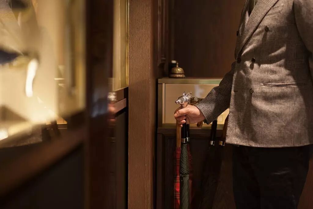 Foxglove 把伞像展品一样放在展示柜里(这里的百年手工伞Fox Umbrellas是真的有在卖),精致讲究得跟电影一毛一样。但当你走到柜台,机关来了!握住狐狸头把柄伞,神奇的大门就会打开…….