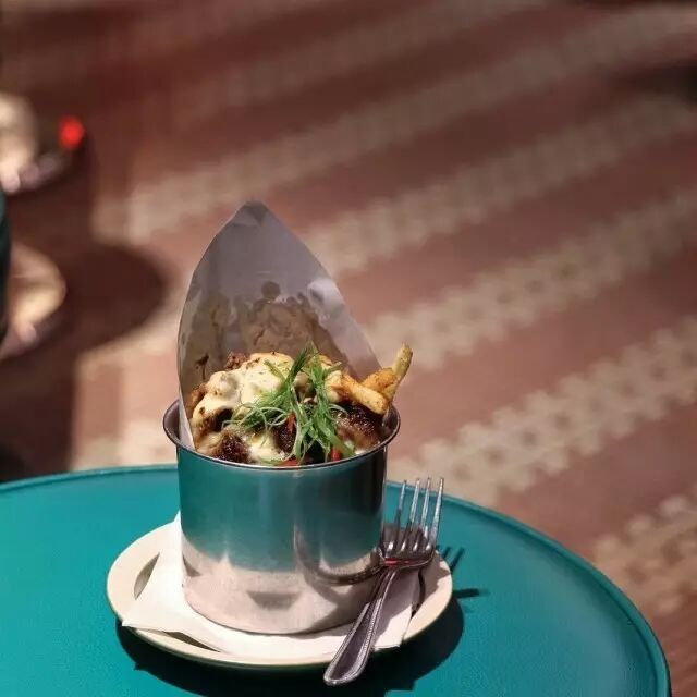 大胆的撞色源于王家卫的电影美学,怪不得给人如此浪漫的感觉。磅太太主打东南亚菜系,Lunch、Dinner、Brunch、Drinks一样不差。她家的“Rendang Poutine”还被美国网站评为“死前必须尝试的19道香港菜”之一。