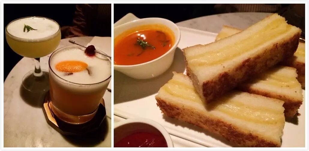001的酒酒精浓度较高,是香港公认排名前五的Whiskey Bar。至于小食,比较多推荐的是Gruyere芝士三明治,外脆内软,芝士不腻还有淡淡的牛奶清香。