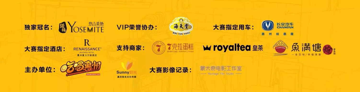 感谢诺楠▪悠山美地、海天堂、长安汽车惠州裕惠隆、惠州富力万丽酒店、7克拉蛋糕、Royaltea皇茶、鱼满塘、农夫山泉、蒙太奇电影工作室对本次活动的大力支持。