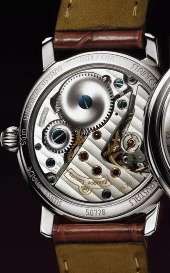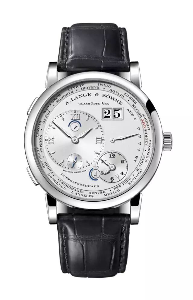 这款手表同样使用的是本品牌研发的L031.1型机芯。除了典型的传统元素外,这枚朗格自制机芯还包括一个复杂装置,可校正地区时间,以及一个附设推动装置的城市圈。此清晰可见的装置由手工雕刻的中间轮夹板承载。高难度的手工雕刻给我留下了深深的印象。
