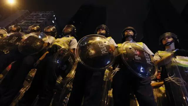 警方节节退守,不住使用胡椒喷雾发出警告,然而眼见情势处于下风。