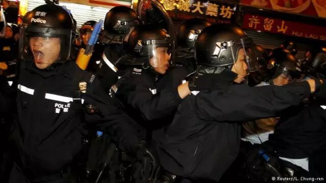 终于,再度僵持到凌晨1时许,场面再度恶化开来。武装警员在山东街至钵兰街一线交接位置部署人墙,警告暴民散去,但遭到明确抗议。本土派部分蒙面人手持自制的盾牌,向警员猛丢砖块,玻璃樽等物品。警务人员再次以红色旗进行警告:若再有武力挑衅行为,警方将开始动用最低武力。然而警告无效。暴民中的部分人士开始冲破的人墙,开始操家伙猛砸官兵,用尖锐凶器狂砍警务人员。此时,。