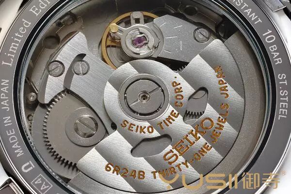 Presage向来搭载的都是6R系列机芯,此款漆艺表搭载6R24,具备日历、星期双逆跳显示功能。视觉上面盘的功能分配颇为对称,读时更为方便。而光亮无暇的漆艺面盘,搭配日历、星期的双逆跳显示,在蓝色面盘运动的瞬间,仿佛是深邃夜空中转瞬即逝的流星,以复杂的漆艺工艺停格出足以收藏拥有的永恒。