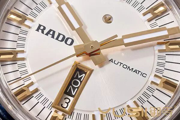 腕表造型棱角分明是一大特色,表身的钛金属材质经特殊硬化处理,硬度比一般用于腕表的不锈钢还要强5倍,抗磨损度极高,但重量却只有不锈钢的一半,延续了雷达在材质开发上的实力。