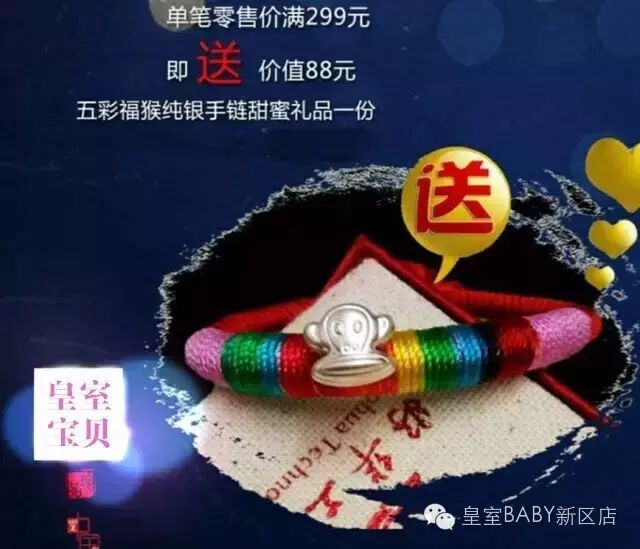 全场胎毛纪念品单笔满299元即送88元五彩福猴纯银手链一份