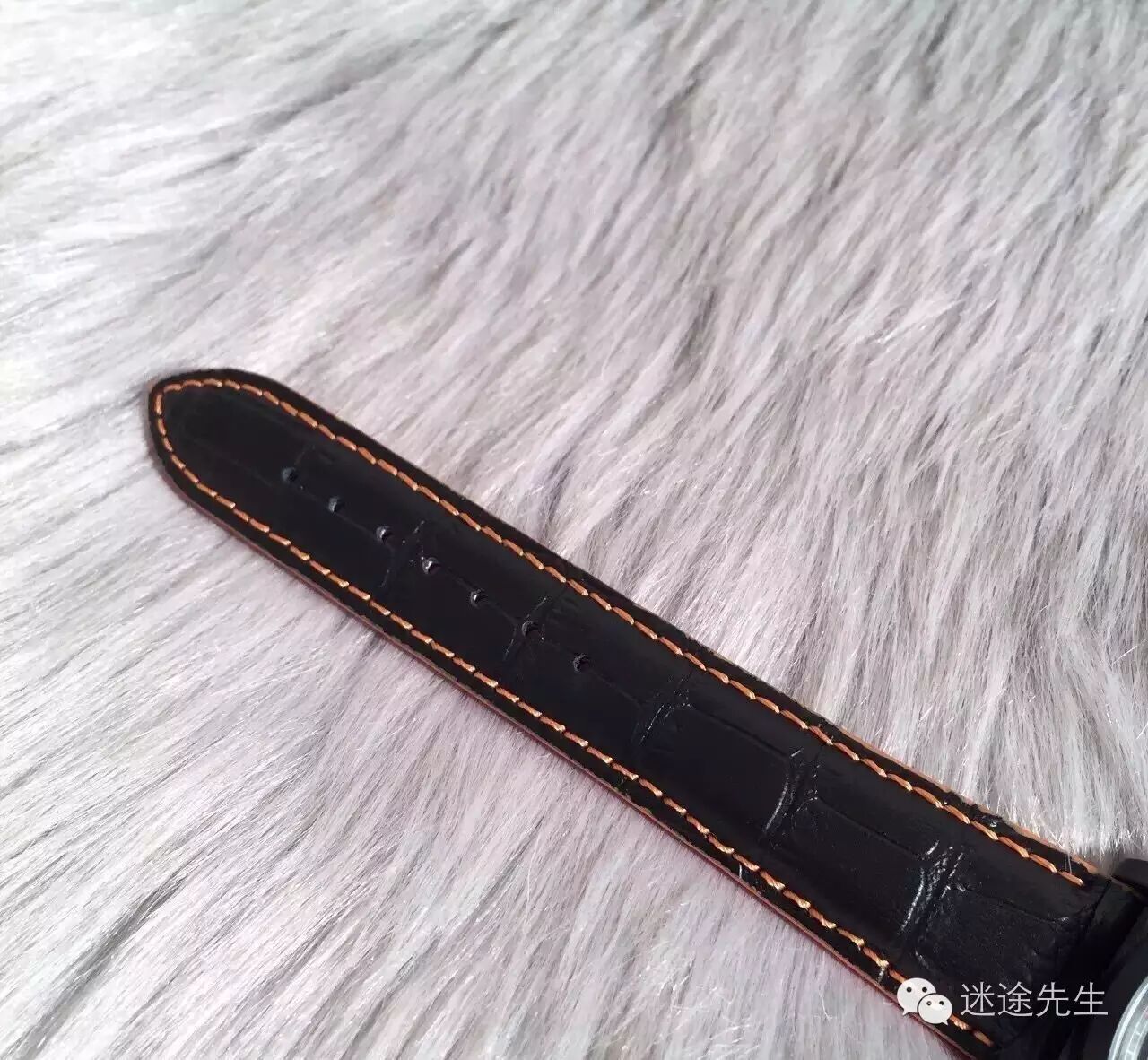 镜片采用蓝宝镀膜玻璃,搭上黑色小牛皮表带。