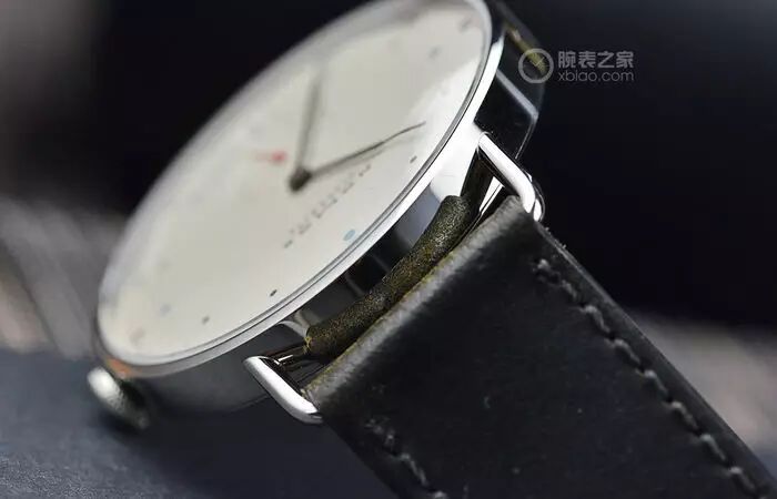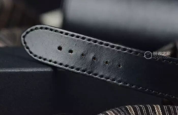 腕表搭配一条黑色马皮表带,其坚固耐用是皮表带中的之最。