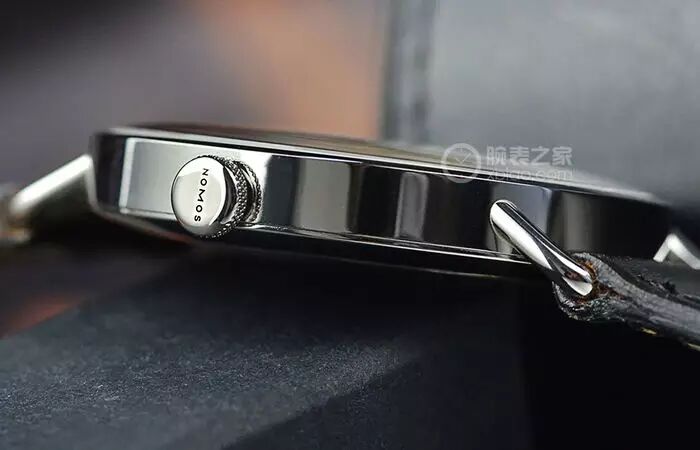 表壳厚度约为7.75毫米,表冠印有“NOMOS”字母样式。