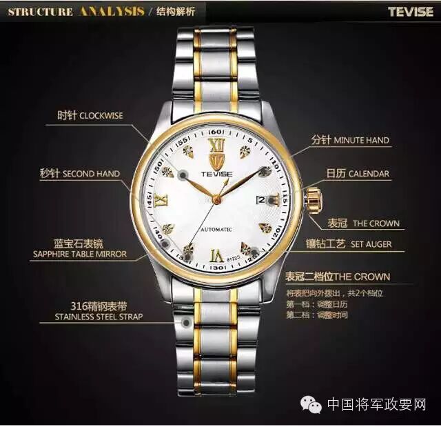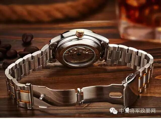 此款为全自动机械表,表盘背后透明钢化玻璃设计,可以看到机械机芯。