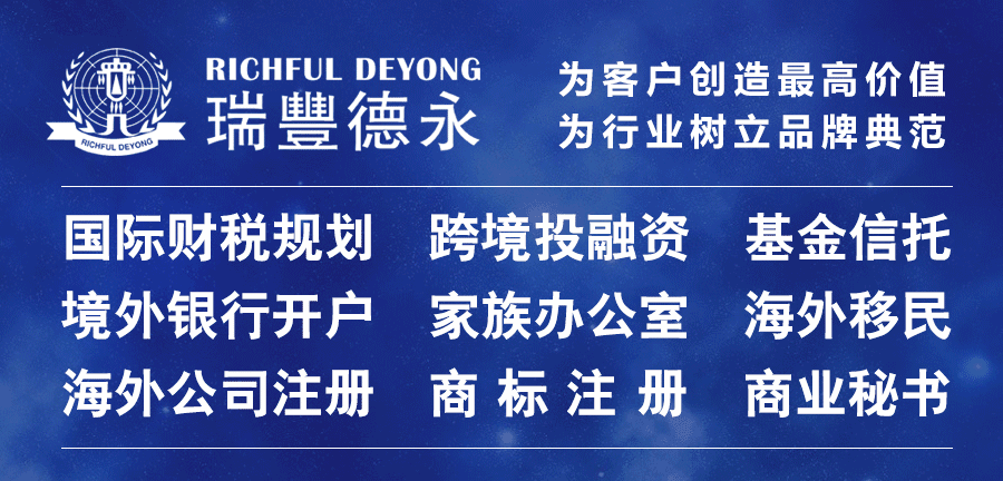 全球领先的一站式商业服务提供商——瑞丰德永集团,在宁波、北京、上海、广州、深圳等城市设有12家公司,拥有一支超200名的会计、金融、税务等高级顾问团队。成立近十年来,已为全球4万多名客户及100多家上市公司提供一站式商业解决方案及顾问服务。业务遍及全球20多个国家及地区,涵盖海外架构设计、跨境投融资、国际财税规划、国际贸易、离岸金融、银行开户商业解决方案、投资移民、财富传承等 。