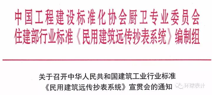 由住建部政策研究中心组织修订的《民用建筑远传抄表系统》(JG/T162)将于2018年正式颁布实施。该标准的修订主要是为住建部主管的公用事业信息化和智慧城市建设服务。为了做好新标准的贯彻实施工作,标准编制组计划于 2017 年 12 月 16 日(星期六)在北京召开《民用建筑远传抄表系统》标准宣贯会。
