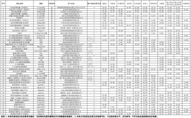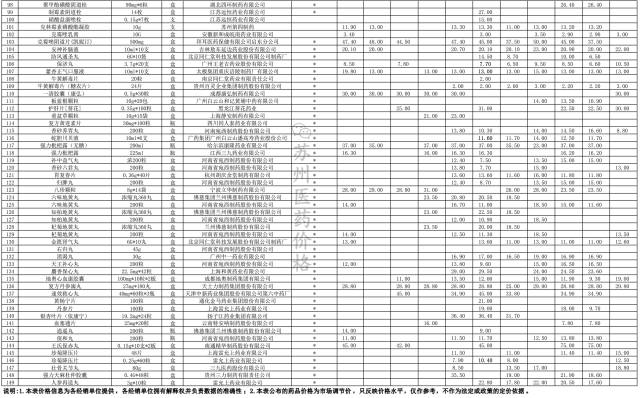 注:1-34号为抗菌和感冒类;35-41号为血糖类;42-69号为心脑血管类;70-103号为其他西药;104-218号为中成药。