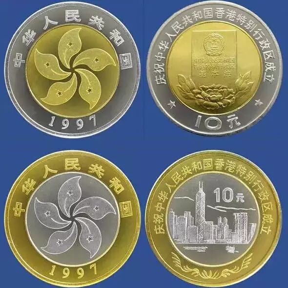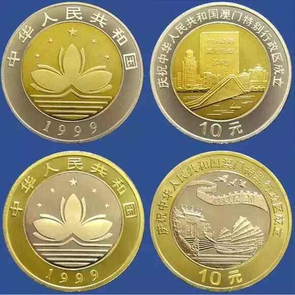 今年是香港回归20周年纪念。1997年,中国人民银行发行了香港特区成立纪念币一对2枚。两年后澳门回归时,又发行了澳门特区成立纪念币一对2枚。前后发行的这4枚纪念币,组成了完整的一套“香港澳门回归纪念币”。