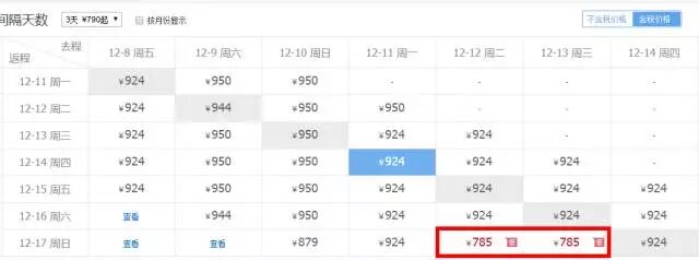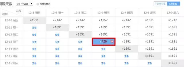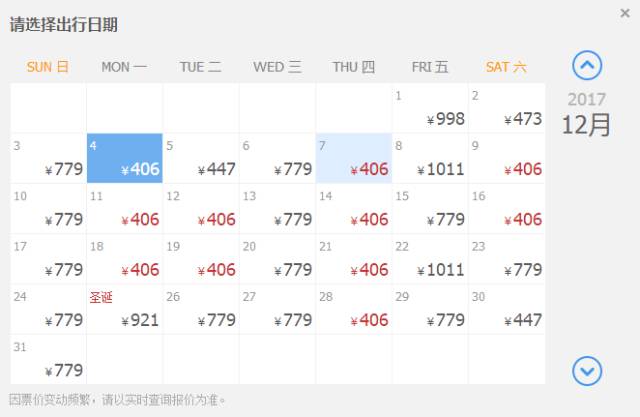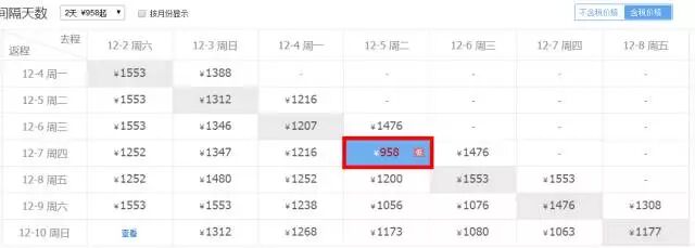 最佳出行日期:12.12-12.17日