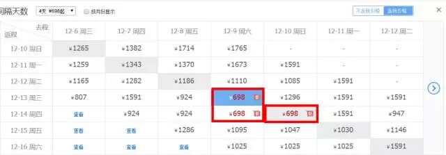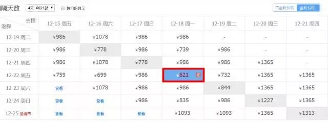 最佳出行日期:12.16-12.19日